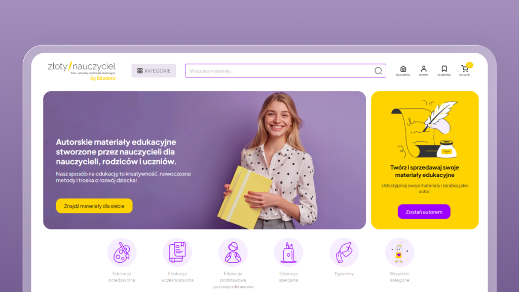 Złoty Nauczyciel is a multi-vendor educational marketplace that allows teachers and educators to sell digital products such as lesson materials, webinars, and training programs, while also building a professional community.